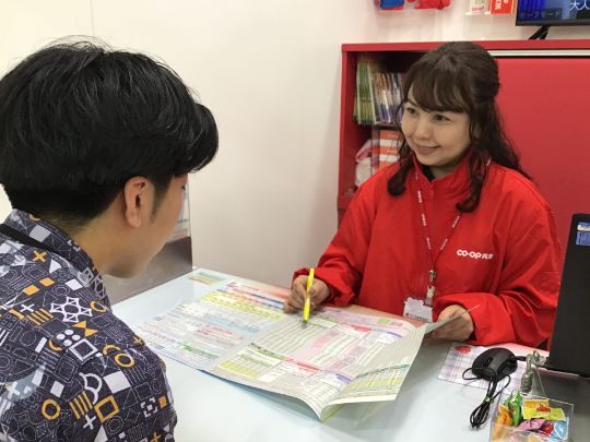 仕事内容 \加入者様からの感謝の言葉が私たちのやりがいです!/ 嬉しいお声の一部をご紹介♪ ・加入時、担当者の方が優しく接して下さいました。スーパーの中にあるので行きやすく、 すぐ対応してくれたので、0歳の息子が一緒だったのですがすごく助かりました。 ありがとうございました。 ・手頃な掛け金なので家族みんなで入っています。 去年子供が産まれたのでこの子もコープ共済のおせわになろうとおもいます。 担当してくださった方もご丁寧に対応して頂きありがとうございました。 ・Web受付の方法を担当の方がていねいに親身になって教えて頂き、 素敵な対応にコープ共済加入して良かった。オススメしたいと思いました。 <仕事内容> 店舗共済カウンターへ来店されたお客様へ コープ共済の案内や加入の手続きを行って頂きます。 <具体的には・・・> ●コープ共済保障内容などのご案内 ●共済への加入手続き <未経験の方も安心です> 現在活躍中の先輩スタッフも、未経験からスタートした方ばかり! 安心の研修制度があるので、未経験の方や保険の知識に自信のない方も安心してご応募ください♪ <研修について> 入社後2週間:座学でコープ共済について学んで頂きます(浦添センター) 1ヶ月目~3ヶ月:先輩スタッフのOJT 4ヶ月目以降:ひとり立ち!おひとりでご案内をお願いします ※ 研修の状況を見て、早めにひとり立ちする場合もございます。 ※分からない事があってもすぐに聞ける環境です♪ ※研修期間中(入社~2週間)は、コープおきなわ浦添センターで勤務