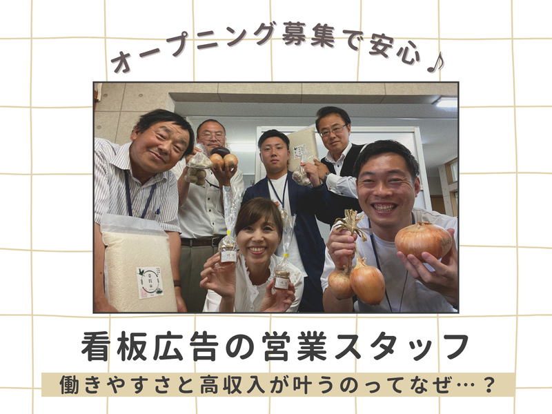 仕事内容 \まっさらなスタート、一緒に楽しもう!/ オープニングだからこそ、 未経験でものびのび挑戦できます♪ ⭐日・祝+隔週土曜休み ⭐年3回の長期休暇(8~9連休) ⭐定時で「おつかれさま!」が当たり前 ⭐直行直帰OK、自分のペースで働ける ⭐人と話すのが好きなら大歓迎♪ ⭐頑張りはインセンティブでしっかり還元! 地域に根ざした飲食店やクリニック、サロンなどを 「屋外広告(=看板)」で応援する提案営業のお仕事です! 街の元気を看板から支える── そんな想いがあれば、営業未経験でも大丈夫◎ 先輩がしっかり同行サポートしますので、 知識ゼロ・経験ゼロでも安心してスタートできますよ♪ 残業ほぼなし&自分で予定を組める柔軟さがあり、 子育て中の方・家庭との両立を大切にしたい方にもピッタリです! ■尼崎で働く魅力、まとめました✨ ┈┈┈┈┈┈┈┈┈┈┈┈┈┈┈┈•• ✅ 定時退社が基本!メリハリ勤務が叶います 「家族と晩ごはん」「趣味の時間を満喫」── そんな毎日を、当たり前にできる職場です◎ 固定残業代(22時間分/30,900円)は月給に含まれますが、 実際の残業はほぼゼロ! 18時にはほとんどの社員が退勤しています♪ ✅ 日・祝+隔週土曜休み+長期休暇あり! ・日・祝+隔週土曜休み ・年3回の長期休暇(GW・夏・年末年始) ・直行直帰OK&スケジュールも自己管理で◎ 旅行や趣味、家族との時間も大切にしながら、 無理なく働けます! ✅ 「ずっと尼崎で働きたい」そんなあなたに 転勤なしで、地元でずっと活躍できます◎ 子どもの転校や介護の心配がある方も安心! 地域の企業やお店と関係を深めながら、 地元に貢献するやりがいも感じられます。 ✅ 収入も自分らしくコントロール! 給与スタイルは選べます! ▶ 安定重視:固定給+インセンティブ ▶ 稼ぎたい派:歩合給メイン 変更もOK!年収1000万円を目指す社員も◎ ✅ 若手も応援!奨学金返済サポートあり 奨学金の返済に月1万円の手当支給(規定あり)✨ 新しいスタートを経済面からもサポートします! ✅ 面白すぎる!? ちょっとユニークな福利厚生 「えっ、こんなんあるん!?」と社員も二度見する、 ちょっと変わった“あったか制度”をご紹介◎ ◎ 無農薬野菜を定期でお届け! 仕事終わりに新鮮野菜をゲット!? 思わず家族のごはんもヘルシーに♪ ◎家族も一緒に楽しめるBBQイベント 社員だけでなく、奥さん・お子さんも参加OK! 会社の人と、ちょっと“ええ距離感”で繋がれる場です◎ ◎ 誕生日のお祝い制度あり 「おめでとう」をちゃんと伝える、そんなあったかさが自慢です♪ “人を大切にする会社”って、 こういうところに出るんやなぁ── と実感できる制度ばかり! 詳細は〈福利厚生〉欄でぜひチェックしてみてください♪ ■お仕事内容 ┈┈┈┈┈┈┈┈┈┈┈┈┈┈┈┈•• \今回はオープニングスタッフ募集!/ スタートはみんな一緒。 未経験の方も安心してチャレンジできます♪ 「もっとお店のことを知ってもらいたい」 「近所の人に開院したことを伝えたいねん」 ──そんな想いを持つ企業や店舗に向けて、 【屋外広告(=看板)】を提案する営業のお仕事です! とはいえ、いきなり売り込むような営業じゃありません◎ まずはお話を“聞く”ところから。 「どの場所が目立つかな?」 「どんな看板やったら見てもらえるやろ?」 …そんなふうに、お客様と一緒に考えていく仕事です。 美容院、整骨院、居酒屋、クリニックなど── 地域で親しまれているお店を、看板で盛り上げるやりがいがあります♪ ▼具体的には… ─────────────── 地元の新しいお客様も、昔からのお付き合い先もどちらも対応◎ ✅ お店・会社への看板広告のご提案 ✅ 設置にピッタリな場所のリサーチ・企画 ✅ 土地のオーナーさんとの調整 ✅ スケジュール管理や電話・メール対応 など ▼未経験も安心!イチから育てます◎ ───────────────── 今回はオープニング募集なので、 「いきなり現場にポン!」なんてことはありません。 「営業ってやったことない…」という方も心配ナシ! ✨ロープレ研修で“提案のコツ”をレクチャー ✨慣れるまでは先輩と2人で現場へGO ✨ちょっとずつ覚えていける育成制度あり 先輩たちと一緒に 「どんな提案がいいかな?」を考えるところから、 あなたのペースでスタートできます◎ ▼異業種からの転職、大歓迎やで♪ ──────────────────── 「人と話すのが好き」 「接客の経験を活かしたい」 「子育てが落ち着いてきたからそろそろ仕事復帰したい」 「ずっと尼崎で働きたい!」 ──そんな気持ちがあれば大丈夫◎ ✅普通自動車免許(AT限定OK) ✅パソコンの基本操作 この2つができればOK! 知識ゼロ・未経験からスタートした仲間もたくさんいます♪ もちろん、 「営業やってたよ」「広告まわりの仕事経験あるよ」 という方も、しっかり優遇します! ■成長企業で、地域に根ざした働き方を ┈┈┈┈┈┈┈┈┈┈┈┈┈┈┈┈•• 私たち《関西広告社》は、 1992年の創業以