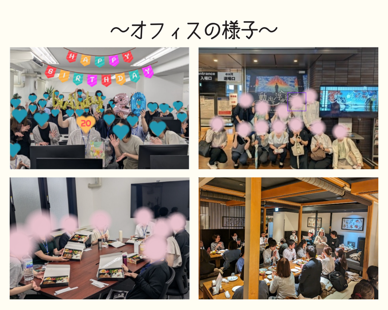 職場環境 《職場環境》 ・全体:59名(男性12名/女性47名) ・年齢層:20~30代が中心 《社内交流イベント》 普段からの交流も大切と考え、毎月レクリエーションを開催! 昨年は、BBQやカフェ巡り・忘年会など行いました。もちろん自由参加! 喫煙所:なし(敷地内全て禁煙)