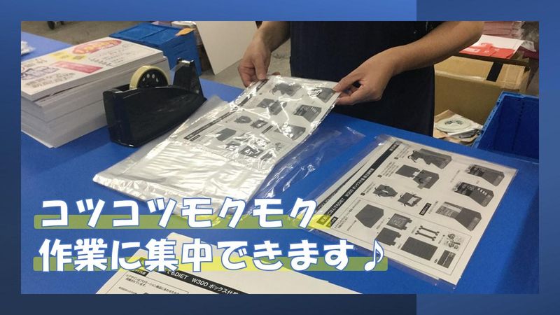 仕事内容 ◎未経験歓迎! ◎週3日~1日5h~OK ◎15時までやフルタイムもOK! 【仕事内容】 イベント(食品・アパレル・化粧品など)の ディスプレイ制作やキャラクター商品の アッセンブリー(詰め合わせ)の作業です。 難しい作業や重たいモノはありません! コツコツ働きたい方にオススメのお仕事☆ 男女ともに未経験スタッフが活躍中の職場! 先輩たちのフォロー体制はバッチリ! 未経験でも安心ですよ! 重量物もないので 未経験の方・女性スタッフも 安心して働いています♪ 空調完備の環境なので快適に働けますよ! 【あたたかい雰囲気の職場環境です♪】 従業員同士の仲が良く、冗談を言い合ったり、 時には真面目なトークをしたり、 何でも話せる関係性を築いています。 上司ともフランクに話せて、 風通しの良さはバツグンです! 【多様な働き方が可能】 「ガッツリ稼ぎたい」 「自分のペースで無理なく」など、 多様なライフスタイルにマッチした 働き方が実現可能です! 柔軟に対応してくれるので、 長く続けられますよ! 【応募動機は何でも構いません!】 「経験を活かしたい!」 「今よりも収入を増やしたい!」 「夜勤がなくて、しっかり休める環境がいい!」 「未経験から新しいことに挑戦したい!」 あなたの“頑張りたい”気持ちを 全力で応援します! 経験者の方は即戦力として、 未経験の方はこれからの戦力として、 全員が活躍できる場をご用意しております。 サポート体制もしっかり整っているので ご安心下さい!! 不安なことや仕事への疑問など ございましたら、面接の際にお聞かせ下さい。 会社のことや職場環境など しっかりお話します。 新しい環境で不安なくスタートできるように していきましょう!