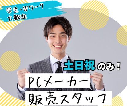 \土日祝のみ*高収入!実働7時間で日給1.2万円!/平日は自由!週末だけで月9.6万円~の安定収入(^^)★業界未経験からでもOK!大手外資系PCメーカーの販売スタッフ☆