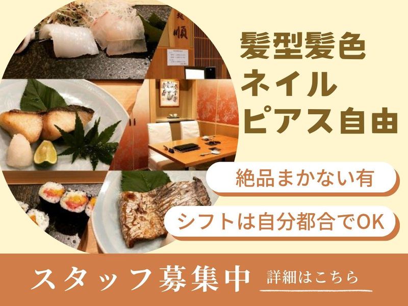 仕事内容 ―――――――――――――――――。・* ✨雰囲気◎先輩スタッフが優しくサポート グルメサイトで高評価!『鮨処 順』 老舗寿司店の風格はありつつも 親しみやすい接客と 上品な食事の数々が人気の秘密♪ *・。――――――――――――――――― 【仕事内容】 ✅お客様の案内、注文伺い等の接客対応 ✅洗い場もお願いします ⏩洗い物は自動食洗器を使うので楽々♪ 丁寧な研修があるので未経験でも安心です! ☆・・・・…―――――――――――・・・…☆ ⭐絶品お寿司は賄いで食べられます♪ 洗い場orドリンカー専任も同時募集中です! お気軽にお問い合わせください。 ☆・・・・…―――――――――――・・・…☆ コース料理のみなので 魚の名前やグランドメニューを イチから覚える必要はありません✨ 30代~50代の客層が多いため 店内もすごく落ち着いていますよ♪ お客様とのコミュニケーションを 大事にしており確かな接客力が身に付きます! まずは短期でお試し♪ 慣れてきたら長期で勤務も可能!