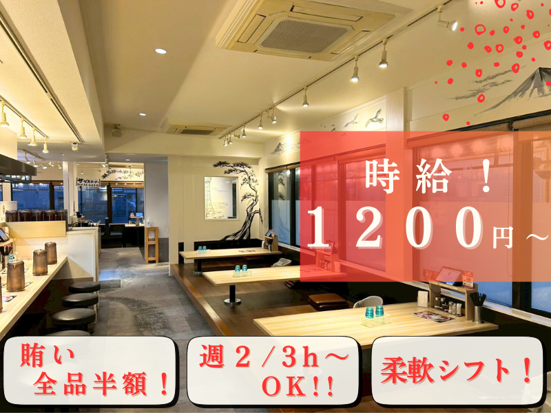 求めている人材 【【 大学生~主婦(夫)さん世代活躍中 】】 バイトデビューも大歓迎♪ 幅広い年代の方が活躍中★ 世代問わずスタッフみんな仲良しです♪ スポットで働くWワーカーさんも在籍中! 子供が帰ってくるまで働く方や、 授業終わりに勤務するスタッフも◎ \こんな方が活躍中!/ ・人と接するのが好きな方 ・Wワークをしたい方 ・子育てのスキマ時間に働きたい方 ・プライベートも充実させたい方 ・社員も目指したい方 ・接客/販売がしたい方 ・ラーメンが好きな方 ・オシャレを楽しみながら働きたい方