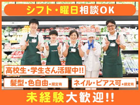 仕事内容 【お仕事の内容】 \お店の売場を整えるお仕事です♪/ ドライ食品や日用品(お菓子、調味料、洗剤など)の補充・陳列作業をお願いします。 主な業務内容: ・商品の品出し・棚への補充 ・商品の前出し(きれいに見えるように並べる) ・賞味期限や陳列状況のチェック ・売場の整理整頓 ・調理補助なども◎ お客様から商品の場所などを聞かれることもあります バックヤードと売場を行き来しながらの作業になりますが、レジ業務や精肉調理などの専門作業はありません。 【うれしいPOINT】 ・シフト相談・扶養内もOK!家庭やプライベートと両立◎ ・ 髪型・髪色自由/ネイルやピアスもOK♪(規定あり) ・ バイク・自転車通勤OK/交通費支給あり(規定) ・ 休憩室・ロッカー・更衣室完備!働きやすい設備が充実♪ 【スタッフの声】 「作業中心ですが、売場にいる時間もあるので、 『この商品どこにありますか?』と聞かれることも。 でも接客スキルが自然と身につくので、良い経験になります♪ 時間が決まっているから、家事との両立もできて助かってます!」 【こんな方におすすめ】 ● モクモク作業が好きだけど、ちょっとした接客もOKな方 ● 安定した勤務を希望しているフリーターさん ● 家事や子育てと両立したい主婦(夫)さん ●学校や部活と両立したい学生・高校生 ● スーパーやドラッグストアでの勤務経験がある方歓迎! \職場の“裏側”ものぞけちゃう!?/ 普段はなかなか見られない、スーパーのバックヤード。 実は設備がキレイで働きやすいんです! - 【当店のココが働きやすい!】 ★定期的な店舗改装で設備が新しい! 古くなったお店は更地にして、新しく再建。 売場だけでなく、バックヤードの清潔感にも自信あり◎ ★休憩室も快適♪ 冷蔵庫・電子レンジに加えて、価格が安い自販機も設置! ★社員の多さ=安心感! 店長・副店長に加えて、各部門に責任者+社員が在籍。 「困ったときは誰に聞けばいいか」が明確で、バイト初心者でも安心して働けます◎ ★相談しやすいシフト体制 シフトや仕事内容の相談も、担当部門の責任者に気軽にできる環境。 だからこそ、長く働いているスタッフが多いんです♪ 【チームワークも抜群!】 店内は広く、商品数も多いからこそ「チームワーク」がとても大事。 写真撮影のときも、照れながらも協力してくれる優しい先輩たちばかり! 人間関係の良さ・居心地の良さは、ぜひ見てほしいポイントです。 「ここにしてよかった!」と思える職場です。 初めての方にも自信を持っておすすめできる、安心&快適な環境が整っています!