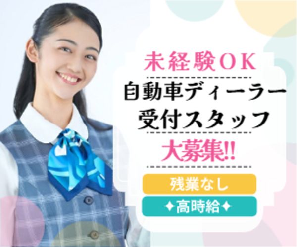 仕事内容 大手国産車販売店のショールーム ❤️受付スタッフ募集❤️ //////////////////// ✨ お仕事内容 ✨ /////////////////// ■ご来店されたお客様の受付対応 ■担当社員への引継ぎ ※セールス業務はありません。 ■ドリンクのご提供や片付け ■お子様連れのお客様の対応等 ■VIP対応 ※OJT研修もきちんとございますので、 未経験の方でも安心です◎ 「もう少し詳細が聞きたい!」 「他にも応募しているけど大丈夫かな?」 「実際に現場を見てみたい!」 少しでもご興味持っていただけましたら 是非お気軽にお問合せください。 あなたからのご応募お待ちしております!