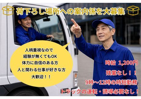 食品物流センター内でトラックを荷下ろし場までの案内係。土日祝休み!午前中だけのお仕事です。