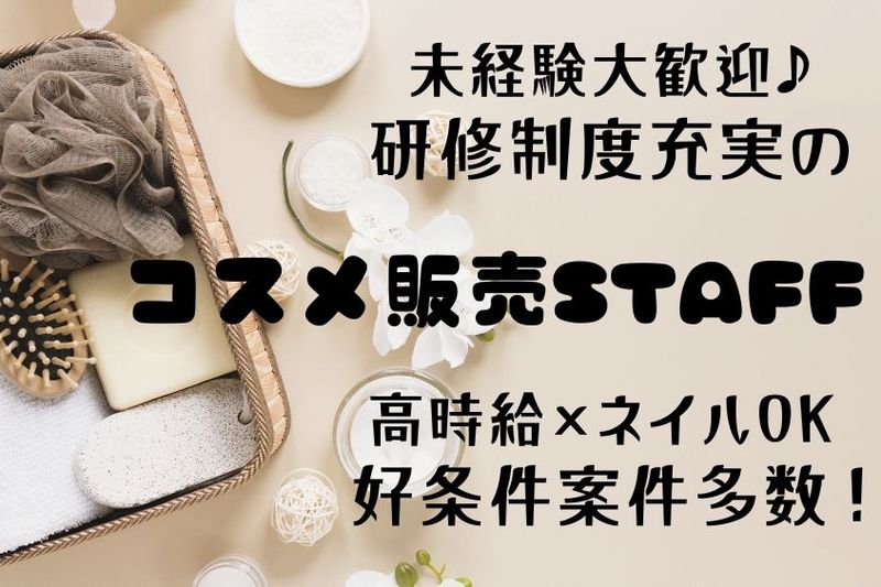 仕事内容 ≪ブランドコンセプト≫ 国内外のコスメを中心に、スキンケア・メイクアップ・フレグランスまで幅広く取り揃えるコスメセレクトショップ。 高品質なアイテムを手に取りやすい価格で提案し、宝探し感覚で楽しめるラインナップが魅力。 日常使いからちょっとしたご褒美まで、自分らしい「キレイ」を見つけられるブランド。 ≪業務内容≫ 接客販売、レジ、お包み、ストック管理、 店内ディスプレイ、その他付帯業務などお任せいたします。 ≪服装≫ 私服勤務 ≪嬉しいPOINT≫ ・ネイルOK♪お洒落をしながら働ける ・レジの経験さえあれば未経験でも歓迎 ・未経験でも高時給◎ ・駅チカで通勤らくらく 【業務の変更範囲】 変更の範囲なし 【勤務地の変更範囲】 変更の範囲なし