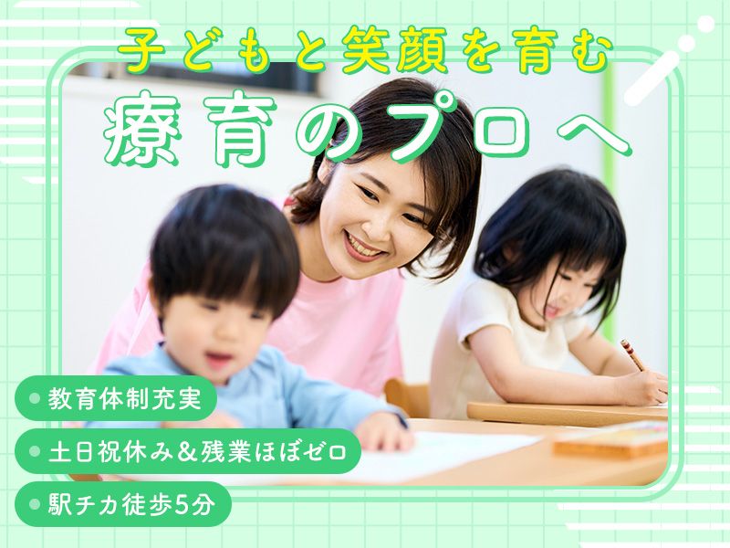アピールポイント 【未経験・ブランクのある方も安心】 ●障がい児療育の経験がない方 ●保育士・幼稚園教諭としてブランクがある方 上記の方もご安心ください! 入社後は、経験豊富な先輩職員によるOJT研修や、 社内外の研修制度を通じて学べます。 個別支援計画の立て方や障がい特性、 子どもたちとの関わり方について、 丁寧にレクチャーする体制です! あなたのペースで学び、ステップアップしましょう♪ 【家庭やプライベートとの両立も可能!】 ●完全週休2日制&土日祝休み ●年間休日は120日以上 ●残業も月0~10時間程度とほぼなし 家庭や趣味などと両立しやすい環境です! 【通勤ラクラク】 ●阪急十三駅から徒歩5分の好立地 ●車通勤OK、バイク通勤OK 通勤のストレスが少ないから、 毎日ムリなく通えます!