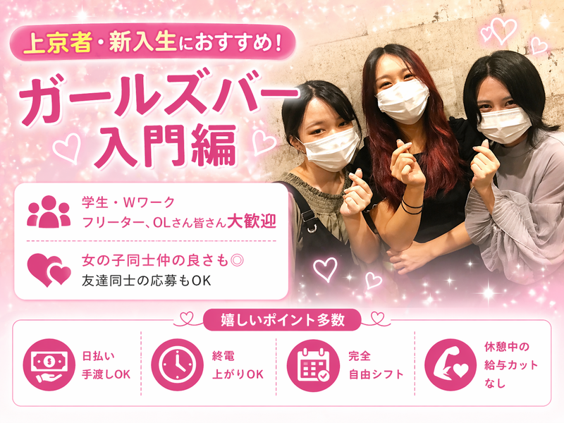 求めている人材 ⭐未経験大歓迎 完全法令順守のガールズバーなので ✅私服勤務 ✅コスプレや露出のある衣装なし ✅連絡先交換禁止 ✅指名制一切なし ✅営業行為なし ✅法人運営で安心安全 始めるハードルは飲食店と変わりません! ★こんな方におすすめ! ⭐私服でそのまま出勤したい ⭐スタッフ同士の仲の良い職場がいい ⭐繁華街から離れた場所のお店がいい ⭐笑顔で楽しく働きたい ⭐夜にできる副業を探していた ⭐ただただ稼ぎたい…(笑) 最初はどんな理由でもOK 興味を持っていただけたら嬉しいです♪* ✅歓迎条件 ✨学生/フリーター/Wワーク/OLさん などなど大歓迎! ✨経験/学歴/年齢不問! ✨お友達同士の応募も歓迎! ✨深夜勤務できる方歓迎! ✨レギュラー勤務歓迎 ✨新入生歓迎 ✨上京者歓迎 ⭐⭐ 「Happiness」相性診断 ⭐⭐ □連絡先交換なしにオンオフ分けたい □聞き上手だと言われる □都心だとちょっと怖い □指名制があるお店は嫌だ □初心者向けのお店を探してた! □オシャレが自由な環境がいい □未経験からでも楽しく働きたい □年末に向けて新しいことを始めたい! □同期と一緒にSTARTしたい □自分のペースでゆっくり働きたい □上京を機に仕事を探してる □優しいお客様が多い方がいい 1つでも当てはまるあなたには「Happiness」にピッタリ♪ ぜひ気軽に応募してみてくださいね!