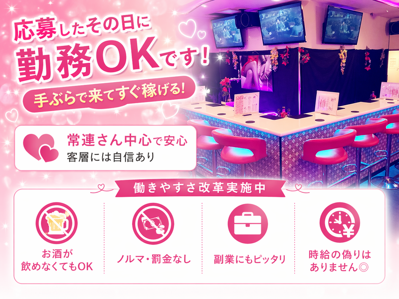 連絡先交換・指名なし/日払いOK/カウンター内での業務のみ✨