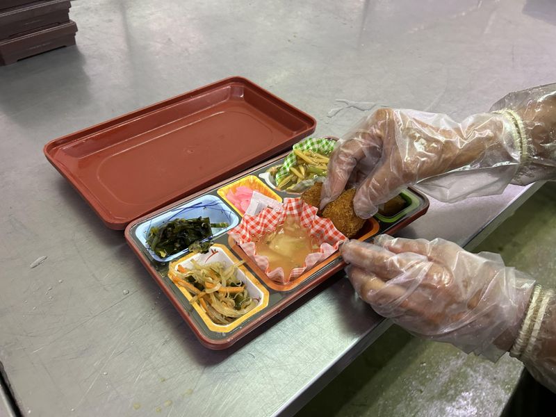 仕出し弁当の盛り付け、調理補助