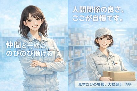 仕事内容 \ 力仕事はほとんどなし! / 扱うのはシール台紙のピッキング作業! 体力に自信がない方でも無理なく続けられます。 清潔な工場内は空調完備で、夏も冬も快適に働けます♪ 【この仕事の魅力】 ・体への負担が少ない ・棚から集めるだけのシンプル作業で未経験でも安心 ・空調完備・清潔な工場で快適に働ける ・土日休み&残業少なめでプライベートも充実 ・月給制で安定収入 【具体的なお仕事内容】 完成した製品を出荷に向けて集めるピッキング作業です。 ・出荷リストを確認 ・出荷する商品をピックアップ ・指定の場所にまとめる 作業手順は決まっているので、一度覚えればモクモクと作業可能です。 先輩スタッフが丁寧に教えるので、未経験でも安心です。 【こんな方に向いています】 ・体力仕事は苦手だけど安定して働きたい方 ・コツコツ作業が好きな方 ・軽作業で長く働きたい方 ・きれいな工場で快適に働きたい方 【待遇・福利厚生】 ・社会保険完備 ・交通費支給(規定あり) ・有給休暇あり ・制服貸与 ・空調完備 ・車通勤OK ・無料駐車場あり ・落ち着いた雰囲気の職場 【応募~入社の流れ】 ・スマホからカンタン応募 ・来社不要の電話面接 ・工場見学(希望者のみ) ・入社手続き 見学後に「条件が合わない」と思った場合もお断りOK! 気軽に応募できます♪ 業務の変更範囲:「会社の定める業務」