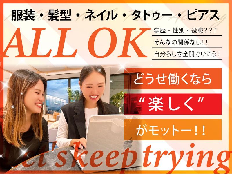 待遇・福利厚生 【福利厚生】 ・社会保険あり(法令に則り適用) ・服装自由 ・髪型・髪色自由 ・ネイルOK ・タトゥーOK ・ピアスOK ・社内イベントあり ・海外研修あり
