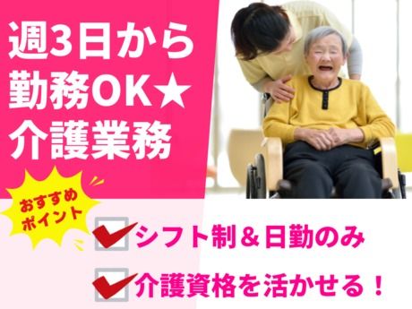 <★資格がなくてもOK!>週3日勤務からスタートできる介護のお仕事♪