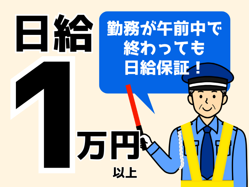 仕事内容 求人のココがPOINT  ̄ ̄ ̄ ̄Ⅴ ̄ ̄ ̄ ̄ ̄ ̄ ̄ ̄ ̄ ̄ ̄ ̄ ̄ ✅1日4hで終わっても日給保証 ✅週2日~OK!家庭と両立可 ✅年金+αの副収入に最適 ✅40代~60代が活躍中 ::*:::*:::*:::*:::*:::*:::*:::* ✨電話応募もOK✨ お気軽にお問い合わせください。 TEL:06-6336-6337 :::*:::*:::*:::*:::*:::*:::*:::* 豊中市内の道路工事・建築現場で、 車両や歩行者の安全な通行をサポートする 交通誘導警備をお任せします。 最初は立ち位置の確認から始め、 誘導のない現場で徐々に 仕事に慣れていきます。 チーム制なので、 未経験の方も安心スタート! <具体的には…> ・道路工事現場などでの歩行者・車両誘導 ・チーム(4~5名)で現場に対応 ・朝は現場に直行し、終了後は直帰OK ・代表が安全確認のため各現場を巡回 ・初日は誘導なしで見学からスタート ◤求人の強みピックアップ◢ ✅1日4時間で終わっても日給1万円保証 「今日は午前中で終わりそう」… そんな日でもしっかり1万円! 現場が早く終わっても給与は全額保証。 短時間でも収入が安定するから、 体力的にムリなく続けられるのが魅力です。 ✅交通費不要!現場に直行直帰OK 自宅から現場へ直行&直帰でラクラク♪ 事務所に寄らずに通勤できるから、 移動のストレスや交通費の心配もナシ。 朝もゆったり、帰宅後の時間もたっぷり取れます。 ✅週2日~勤務OKで家事との両立も シフトは柔軟に調整OK。 家庭の予定や通院、趣味ともに ムリなく両立可能。 ✅地元で直行直帰&バイク通勤OK 勤務地はすべて豊中市内。 吹田・池田など隣接市の案件もあり、 いずれも現場への直行直帰OKです。 バイク通勤も可能で、 「地元からすぐに働きに行ける」便利さ。 通勤ストレスなく続けられます。