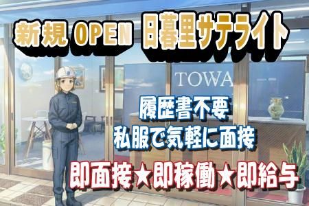 選考プロセス <応募方法> Indeed簡単応募または 電話応募よりご応募ください! (電話03-6240-6102) ~ 面接フロー ~ ① 応募 ↓ ② 面接(即面接も可) ↓ 勤務地付近の営業所で面接実施 ↓ ※面接時は履歴書不要 ↓ ※普段の服装でいらして下さい ③ 採用 ↓ 面接場所近くの病院で ↓ 健康診断受診(無料) ④ 勤務開始 ※防具の貸出あるので 最短で翌日勤務可能! 道に迷った時はお電話下さい。 面接地までナビ致します。 ※出張面接可(要相談) 【面接地・登録地】 株式会社東和コーポレーション 日暮里サテライトオフィス 所在地:東京都台東区根岸2-21-12 ホリビル1階101号 担当者:採用担当 中丸 電話番号:03-6240-6102 メールアドレス:nippori@to-wa.co.jp ※近隣営業所(北千住・秋葉原・錦糸町)で面接・登録も可(ご相談ください)
