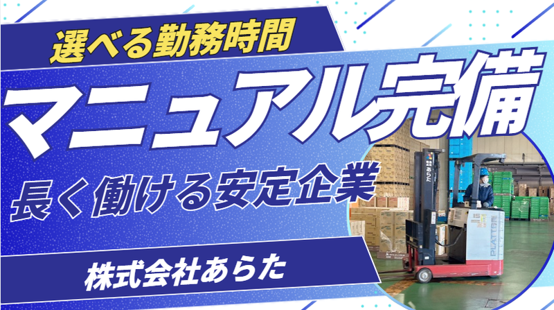 仕事内容 ✨急募✨事業拡大につき増員予定 ▼目立たなくても、確実に信頼される大人へ ✅ 正確さを積み重ねる毎日 ✅ 日用品物流を支える実感 ✅ 継続がそのまま評価につながる環境 ✅ 週3日~、1日4h~OK ✅ 土曜日と祝日は出勤手当あり! 作業が続く時間帯。 安全第一で一つ一つの業務を 着実にこなしていきます。 派手ではないけれど、確実に現場を支える存在へ。 ━━━━━━━━━━━━━━━ ◎【具体的な業務内容はこちら】 ━━━━━━━━━━━━━━━ ////////////////// フォークリフト業務 ////////////////// ⏩ ピッキングリフト パネルに表示された商品を確認し、指定棚から取り出します。 仕分け・検品などの倉庫内作業も行います。 ⏩ リーチ・カウンターリフト 商品の出庫・指定場所への格納作業 そのほか倉庫内作業 ////////////////// つまり… 生活消耗品の安定供給に関わる仕事です!✨ 化粧品・洗剤・ティッシュなど 毎日の暮らしに欠かせない商品を扱います。 入社後は操作練習からスタート! 実務テストも基本操作レベルなので安心です◎ ━━━━━━━━━━━━━━━ ◎【安定企業で長く働ける理由】 ━━━━━━━━━━━━━━━ 東証プライム上場グループの物流拠点! 固定勤務地で転勤なし! 20代〜40代の男性スタッフ多数活躍中✨ 黙々と作業するだけではありません。 仲間同士で自然に声を掛け合い、 無理せず、でも頑張るときは一丸となる職場です! ━━━━━━━━━━━━━ ◎【10年以上続く理由】 ━━━━━━━━━━━━━ 一番の魅力は、人間関係の良さ。 自然と助け合える仲間がいるから、 誰かのために頑張ろうと思えます。 仕事では、現場をスムーズに動かす 橋渡し役のポジション。 自分の動きでチームの効率が上がる瞬間に 大きなやりがいを感じます。 業務も幅広く挑戦できるため、 飽きることなく成長を実感。 無理せず、でも必要なときは一丸となる。 その空気感が、長く続く理由です。 \ 応募は簡単!まずは話を聞いてみるだけでもOK! / お電話でのご応募・お問い合わせも受け付けています! 何か聞きたい事などあれば、お気軽にご連絡ください! <問い合わせ先> 048-450-0105/採用担当