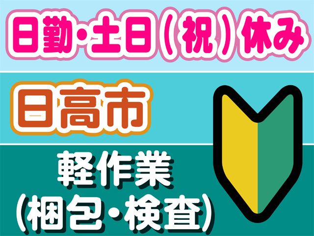 カンタン作業で工場デビュー 20代・30代男性活躍中 日高市×高時給×週払いOKで 働きやすさ抜群!