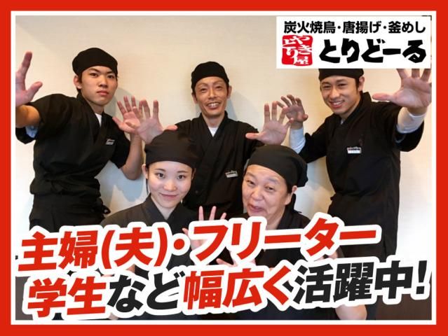 求める人材 学歴不問/無資格OK/未経験歓迎 主夫・主婦歓迎 高校生OK! 【大学生さん】 平日の夜と土日に週3回勤務。テスト週は少し抑えめ。 お小遣いをしっかり稼げて、旅行やお買い物に使える! 【フリーターさん】 趣味・推し活の時間も大切にしたいから、 曜日や時間を調整しながら勤務。 \こんな経験者も活躍中!/ イタリアン・中華・韓国レストランやフードコートでの調理経験、 和食・定食・ラーメンの調理、配膳、ホール、調理師、 ホテルの接客、スーパーやコンビニでのレジ経験、 アパレル、スイーツ店の接客販売、ドラッグストアの販売員など、 あなたの経験はどんなものでも活かせます! もちろん飲食店未経験の方も大歓迎!お気軽にご応募ください♪ この求人のポイント ★トレーナー昇格制度有! 普段の仕事の習熟度と簡単な検定を元に段階的に昇格! 最終的にはトレーナーとしてスタッフさんに仕事を教える立場となります。 最大時給1350円!半年~1年でトレーナーになった方もいらっしゃいます☆ \「とりどーる」ならこんな働き方できます!/ 未経験でお仕事スタートさせて… 丁寧なトレーニングで1つずつ仕事を覚えて… まかないは1食120円で「焼鳥丼」や「唐揚げ定食」を食べて… 1週間毎のシフト提出でプライベートとの両立もさせながら… 長期で勤めて昇給して、有給休暇も取りながら、交通費もキッチリ出て! 実際にお財布に入るお金も充実!!