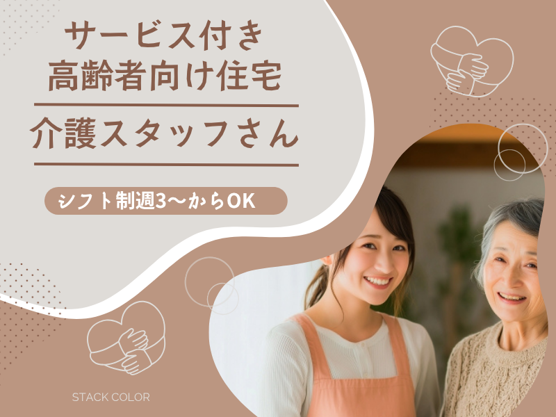 仕事内容 お急ぎの方はこちらにお電話ください! ▶080-3687-9375(担当携帯) SMSでの問い合わせもOKです◎ サービス付き高齢者向け住宅の入居様への、身体介護、 生活支援など下記の通り介護業務全般を行っていただきます。 ●排泄介護・食事介助・服薬介助 ●入浴・身体の清拭・部分浴 ●更衣・洗面・整容・口腔ケア ●起床・就寝介助 ●清掃・ベッドメイク ●移動時のサポート・コールの対応 ●申し送り・介護記録の記入またはPC入力 施設スタッフによる食事・掃除などの生活支援サービスや見守りなどのサービスを受けることができる施設になります。 施設内にある一部屋一部屋が入居者様の居宅になりますので、そこへ行っていただきサービスを提供します。 車や自転車で利用者様の居宅へ行く手間はありません。施設内移動です。 お仕事に慣れるまで、マンツーマンでしっかりフォロー。 仕事や時間配分に慣れてきたら一人で動いてもらいますが、 必ず近くに他のスタッフがいますので何かあればしっかりフォロしていただける環境です★