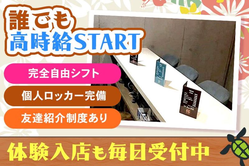 仕事内容 / ハワイアンコンセプトの 隠れ家的バーラウンジ「OHANA」 18時から勤務可能です✨ \ ✨Beach Lounge Bar OHANA✨ ハワイ語で OHANA(家族) という意味を持つ当店は、その名に見合った 人間関係と店内の空気感が一番の魅力です♪ 女の子同士、スタッフとのかかわり方など… 派閥はもちろん、売上げを気にしたピリピリ ムードな雰囲気も一切ナシ⭕ 働く女の子自身のペースで、 リラックスしてのんびり過ごすように働ける Lounge Barです✨ - - - - - - - - - - - 《このお店の特徴》 ⭐ハワイがテーマの店内 ⭐南国のおだやかな時間を感じる雰囲気 ⭐100%対面接客のみ ⭐30分毎の休憩中は何しててもOK ⭐ノルマ・罰金・キャッチ行為なし ⭐カジュアルな私服のままお仕事OK ┏━━━━━━━━┓ ┃★お仕事の内容★┃ ┗━━━━━━━━┛ とっってもシンプルなお仕事です♪ お客様とおしゃべりするだけ♪ 本当にそれだけ!! ご案内や料金説明、延長確認など、接客以外 の部分はすべてスタッフが担当! ドリンク作りや掃除もありません⭕ ( ;∀;){ お酒がニガテ… ( ;∀;){ 同伴・アフターはしたくない… ( ;∀;){ 隣に座って接客するのが不安… という方も、ご安心ください♪ ソフトドリンクは数種類用意! お酒が好きな方で、飲みたいものがなければ お店がしっかり用意します✨ また、接客時は100%カウンター越し。 ボックス席でも対面に座って接客をするので お客様に密着するようなことは絶対にナシ! お客様との会話も、ほかの女の子やスタッフ と一緒にします。 - - - - - - - - - - - 《お仕事の流れ》 ▼ STEP1 |「 いらっしゃいませ~♪」 | お客様を笑顔でお出迎えしたら、 | 空いている席にご案内。 | ▼ STEP2 |「何を飲まれますか?」 | お飲み物の注文をお伺いしたら、 | スタッフがお作りして直接提供します。 | ▼ STEP3 |「何か歌いますか?」 | 会話を楽しみつつ、 | カラオケを歌われるお客様には | 曲を入れてあげましょう! | ▼ STEP4 |「ありがとうございました~!」 | お客様を笑顔でお見送り♪ *+…+**+…+**+…+**+…+* う れ し い メ リ ッ ト *+…+**+…+**+…+**+…+* ⭐月40万円以上の子が多数⭐ 平均でも月20万円以上♪ 未経験で入店した子も、毎月コンスタントに 稼いでいる子がたくさん活躍していますよ✨ ⭐30分毎に休憩アリ⭐ 休憩中は、ご飯を食べても良いし、スマホの チェックや仮眠をとっても大丈夫✨ ⭐私服のままでOK⭐ 自分流のオシャレが楽しめる! 学校帰り、本業のお仕事帰りの恰好のままで 働ける気軽なお店です♪ ⭐帰りは送りあり⭐ お店のお仕事帰りは車で送ります♪ 終電時間を気にせずに稼げますよ✨