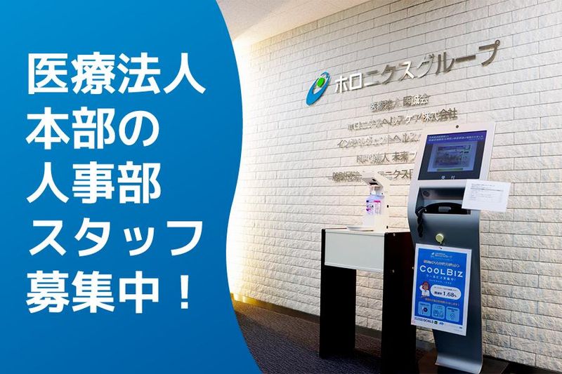 仕事内容 医療法人本部の人事部スタッフ  ̄ ̄V ̄ ̄ ̄ ̄ ̄ ̄ ̄ ̄ ̄ ̄ ̄ 高品質な医療サービス提供のため、 医療従事者(医師・看護師など)の 採用人事業務をお任せします。 医誠会の強みを応募者にアピールし、 優れた人材を集めるお手伝いです。 人事採用の経験がある方はもちろん、 営業経験や接客サービスなどの 経験も活かせます! 医療機関の勤務経験が無くてもOK! 採用に興味のある方なら大歓迎です! ――――――――――――――――― 業界問わず採用経験のある方大歓迎! *人材紹介会社・医療機関など ――――――――――――――――― <具体的な業務> *求人媒体の選定・管理 *就職説明会や採用イベントの実施 *応募管理、面接設定 *採用状況のデータ管理・会議資料作成 *採用方針の検討・調整 └セクション責任者や経営層と *優良な紹介会社の発掘や情報収集 *学校訪問(新卒求人) *採用人事業務に付随する事務作業 <安心のOJT研修> 先輩職員がイチからOJTで指導します。 採用人事のお仕事に初めて挑戦し、 活躍している職員もいます。 採用活動に必要な知識やノウハウを 学びながら仕事に取組んで、 地域医療に貢献してください。 <医療法人 医誠会について> ホロニクスグループの主法人です。 2023年10月に大阪市北区南扇町で開院の 『医誠会国際総合病院』を基幹病院とし、 7つの【病院】、6つの【クリニック】、・ 5つの【老人介護保険施設】を運営する 大型医療法人です。 <募集のポイント> *大型医療法人で安心して長く働ける *年間休日120日 *有給休暇【初年度13日】 └入職時3日+半年後10日 *産休育休の【取得率が高い】 *働き方改革を推進/オンオフきっちり *交通費支給/月5万円まで *互助会制度あり *女性管理職比率が【約60%】 *子育てしながら活躍中の職員多数! ※従事すべき業務の変更範囲 →法人の定める業務 ―――――――――――――――――― ホロニクスグループ(医療法人医誠会) を動画で紹介しています! YouTubeチャンネルはこちら  ̄ ̄V ̄ ̄ ̄ ̄ ̄ ̄ ̄ ̄ ̄ ̄ https://www.youtube.com/c/HolonicsGroup