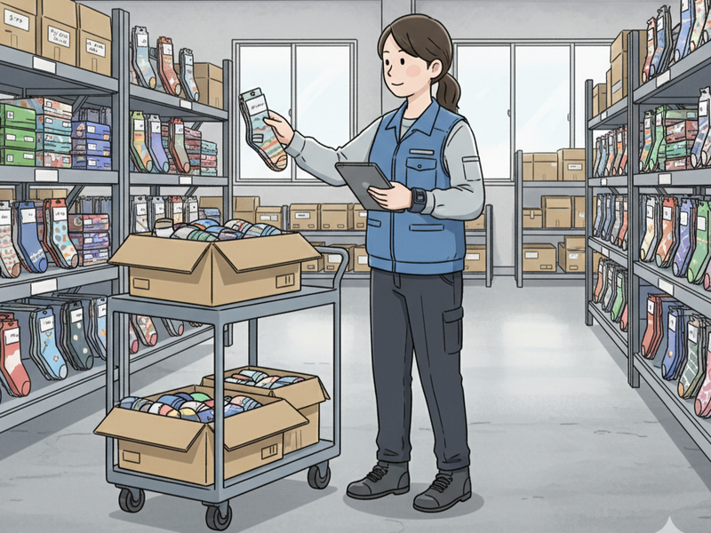 靴下・ストッキングのピッキング・シール貼り・梱包
