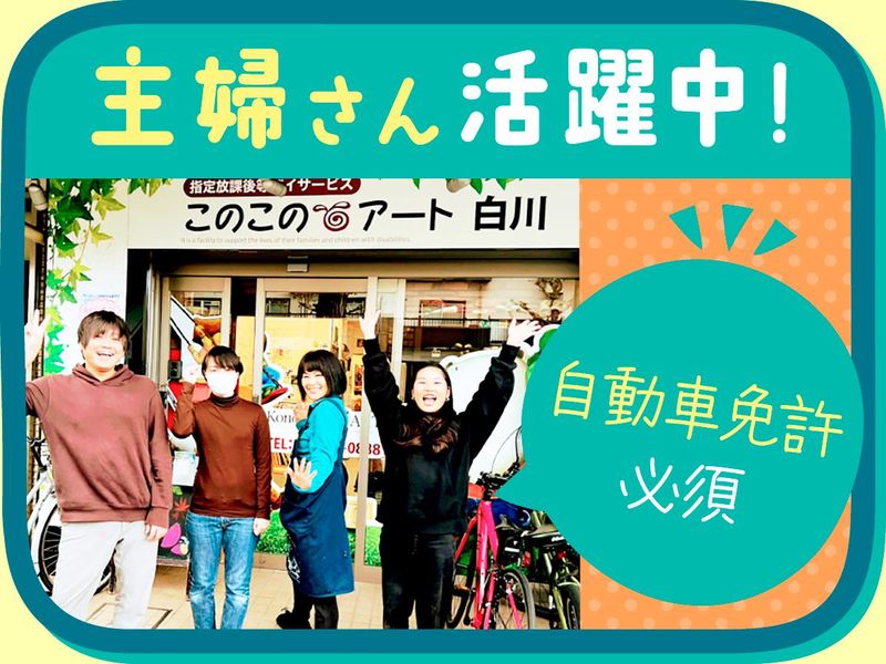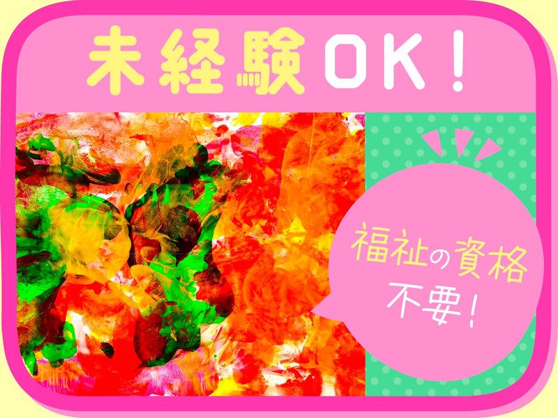 求めている人材 <必須>普通自動車運転免許 ・・人柄重視の採用です・・ <経験不問><資格不問> 「福祉のお仕事」と難しく考える必要は一切ありません!! 子どもたちと楽しく笑顔で遊んで過ごしてくださるだけでOKです! ・業界未経験歓迎! ・職種未経験歓迎! <こんな方も大歓迎★> ・福祉の資格不要 ・何かを創作するのが好きな方 ・主婦(夫)応援! ・シニア応援! ・扶養内勤務OK ・子どもが好き!ふれあいが好き!な方 ・WワークOK