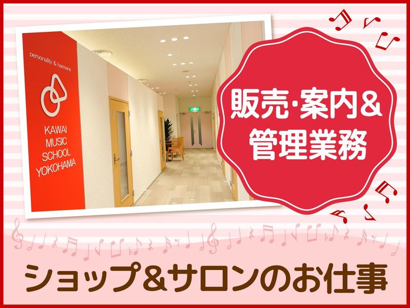 仕事内容 ■■■■■■■■■■■■■■■■ 未経験・ブランク歓迎◎ 音楽・楽器が好きな方は大歓迎◎ 社割あり!昇給随時!の ウレシイ環境です◎ ■■■■■■■■■■■■■■■■ ♪音楽や楽器に囲まれて♪ ♪楽しくオシゴトしませんか♪ ┏…………………………┓ 主なお仕事はコチラ♪ ┗…………………………┛ <ショップ> ご来店されたお客様の接客対応 ●楽譜の販売 ●宅配業務 等 <サロン> ●利用希望の方からのお問合わせ対応 ●日程・現場管理 等 *サロン=ショップに併設されている 小規模コンサートホール お客様はカワイ音楽教室の生徒様や 先生方だけでなく、個人で教えている 先生方など、さまざまな方がご来店 されます。 リピーターとなるお客様も多いため、 日ごろからお客様との良好な関係を 築くことも大切なお仕事です◎ まずは簡単なことからお任せします。 先輩スタッフが丁寧にサポートするので、 未経験やブランクがある方も安心して ください! わからないことがあれば、 気軽に質問できる環境です。 販売や接客などの経験がある方は 活かせますよ♪ 「音楽に囲まれて働きたい」という 方も大歓迎です! \家庭と両立しているスタッフも多数♪/ 「子育てが落ち着いたから、そろそろ 復帰したい」と、育児や家事と両立している 地元の主婦さんも多数活躍中です♪ 朝はゆっくりめの10時スタート& 残業ナシなので、快適に働けます◎ ┏……………………………………………┓ カワイ横浜ショップはこんな所です♪ ┗……………………………………………┛ グランドピアノ、アップライトピアノ、 デジタルピアノ、楽譜、防音室などを 展示販売しています。 音楽に関するアイテムだけでなく、 ファンシー小物なども揃う楽しい環境です♪ ウレシイ社員割引制度があるので、 楽譜やミニピアノをプレゼントとして 買っているスタッフさんもいますよ! ┏………………………………………┓ 「KAWAI」はこんな会社です♪ ┗………………………………………┛ 世界的ピアノメーカーである当社の使命は、 音楽教室の運営や、ピアノ・電子ピアノ といった鍵盤楽器の販売を通して、 音楽文化の発展に寄与し、 それを通じて社会に貢献することです。