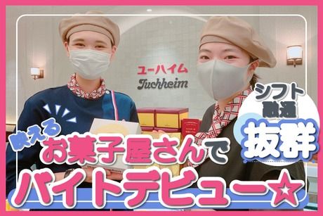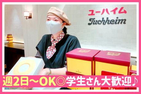 仕事内容 \週2日~OK!かわいいお菓子屋さんで自由に働けちゃう!/ ■オススメPOINT■ ・駅チカだから、大学終わりにサクッと働けちゃう!土日も通いやすい♪ ・制服が可愛い★制服お目当ての応募もあるほど好評♪ ・おしゃれなお店で接客しながらスキルUP!就活にも役立つコミュニケーション力が身につく◎ ■シフト自由度めちゃ高い!■ 週2日~短時間も歓迎! テスト、サークルなど都合に合わせて働けます◎ 履修登録後のシフト変更もOK! \まずは笑顔で挨拶できればOK◎お菓子に囲まれて働ける!/ ・商品のご案内、陳列 ・箱詰め、ラッピング ⇒商品が映えて見えるように◎ ・レジ ⇒商品数も多すぎず覚えやすい! 簡単なお仕事からスタート! 百貨店勤務は敷居が高そう!?そんなことはありません! まずは先輩スタッフに付いて、少しずつ覚えていけばOKです◎ 丁寧な研修やマニュアル資料もあるので、初バイトにもピッタリ! \ユーハイムってこんなお店!/ 実は"日本で一番最初"にバウムクーヘンを販売したお店! 100年以上愛されている洋菓子店です♪ 無添加で安心のバウムクーヘンは自信をもってお客さまに案内できます◎ 世界一長いバウムクーヘンのギネス記録に挑戦したり、 AIを駆使したバウムクーヘン作りのロボットを作ったりして メディアで取り上げられることも!
