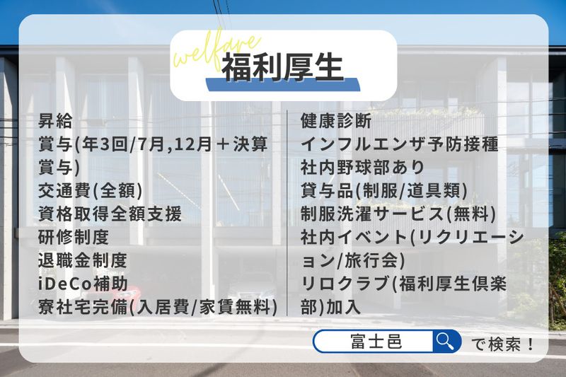 【アピールポイント】 安定して働き続けるなら「富士邑」へ! 【下水道工事会社でメンテナンス作業員を正社員募集】 ■未経験OK ■社員寮完備《家賃不要》 ■高い昇給率/賞与年3回 ■週休2日/ほぼ残業なし