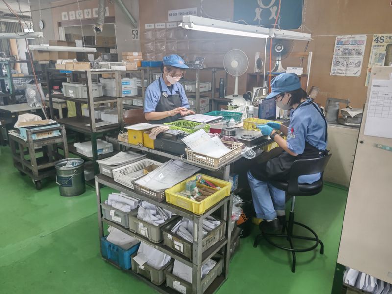 職場環境 検査・組立・梱包などの最終工程です。女性ばかりの部署です。 社内禁煙