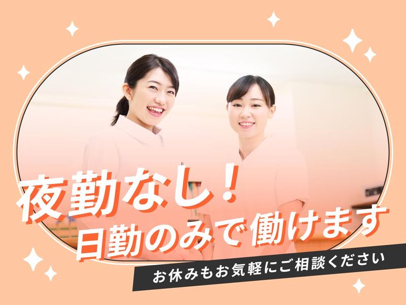 職場環境 職種問わず、人間関係は良好です! 医師・看護師・介護スタッフなど、 幅広い職種の職員が声を掛け合って 日々業務を進めています◎ 新人さんの受け入れ態勢も バッチリ整っていますので、 安心して飛び込んできてください! 喫煙所:喫煙所あり(屋外)