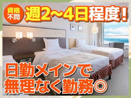 資格 ■無資格・未経験OK! ■「電気工事士」など設備に関する資格が有れば優遇! ■ブランクOK ■ミドル活躍中 ■年齢不問 ■学歴不問 ■未経験者可 ■経験者歓迎 ■長期歓迎 仮眠が取れるので、夜勤のお仕事をしたことがない方もチャレンジしやすい◎ 週2~4日程度でプライベートとメリハリも◎ 豪華でキレイなホテルで働けます♪