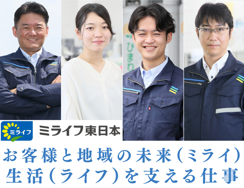 仕事内容 ✅プライム市場上場グループ・ミライフ東日本で働きませんか?✅ 当社はプライム市場上場企業である 「シナネンホールディングス」のグループ会社となります。 生活に欠かせない「ガス」を取り扱い、 東北全域の人々の暮らしを支えています。 会社全体を通して年齢層は幅広く、 特に営業所のルートセールススタッフの多くは 20代~30代の仲間が活躍しています。 ・ベテランさんが若手に教えていく事 ・年齢の近い先輩が相談相手になってくれる事 そうした社員同士のコミュニケーションを 大切にしてきた為、 職場の雰囲気の良さは特に自慢出来る環境です。 ✅未経験の方でも安心の職場です!✅ 新入社員さんの入社条件として 特別なスキルは求めていません。 人と人のコミュニケーションが とても大事な仕事になりますので ・お客様から名前で呼ばれる。 ・なんだかいつも可愛がられる。 ・「またおいで!」と愛される。 など、 人と人の心が重なるような そうした事を大切に出来る人であれば この仕事は必ず上手くいきます。 そして毎日を 楽しく過ごす事が出来ると思います。 お客様に出逢い、会話を通して 少しでもより良い暮らしを 実現する事や安心の毎日の 一助になっていく事が 私たちの何よりの仕事です。 ✅具体的なお仕事内容について✅ ミライフ東日本の正社員として、 ルート営業職のお仕事をお任せ致します。 ≪1≫エリア内のお客様に訪問しガス器具等の安全点検 ガス・電気設備に 関わるお仕事の為、 生活をお守りする使命感を 持っていく事が大切です。 ≪2≫当社商材のご提案並びに、ガス器具修理対応 器具知識や修理作業を覚える事で 現場での対応も徐々に スムーズになっていきます。 ≪3≫導入頂いたガス機器の設置、開閉栓作業など 作業を実施しながらも同時に 笑顔でのコミュニケーションを 意識していきましょう。 【取り扱うエネルギーについて】 ルートセールスは当社が取り扱う 「ひまわりガス」 「ひまわり灯油」等の エネルギーを個人および 法人のお客様に確認やご案内をします。 独自の点検である 「ひまわり点検」や、 4年に1度の法定点検の中で お客様との信頼関係を構築しながら、 ガス器具の買い替えや リフォームの相談などにも 対応していきます。 <転勤> キャリアアップの中で転勤あり ※事業の基盤が整うまで、直近の転勤はありません。 ※転勤の場合は、東北6県での転勤になります。 *「先輩インタビュー記事」* 詳しくは当社の専用サイトでご覧頂く事が可能です! https://arwrk.net/recruit/melife-east-recruit2 一次面接はオンラインでの実施も可能です ※遠方の方や予定が合わない方も 随時、調整・対応しますのでご安心ください。 新しい仲間との出会いを楽しみにしています✨