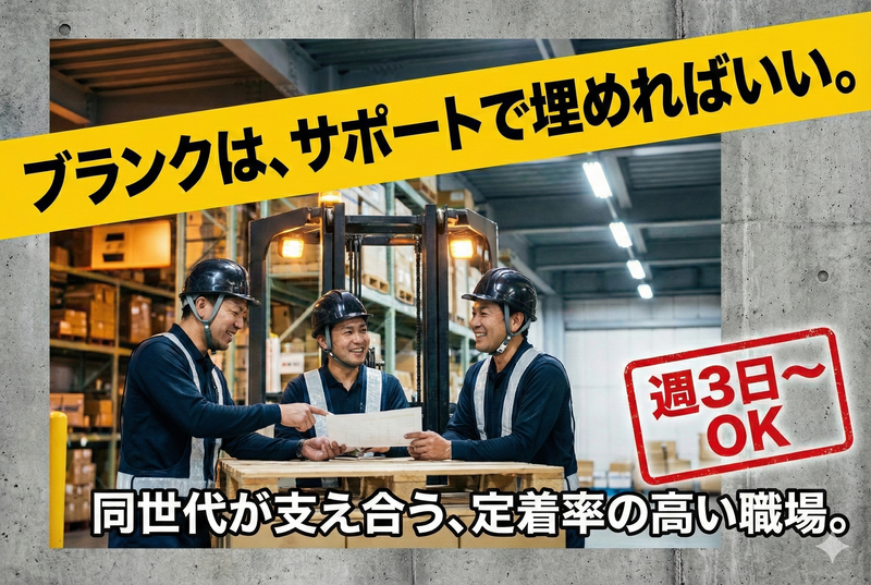 仕事内容 \/\/\/\/\/\/\/\/ ⭐この求人のポイント!⭐ \/\/\/\/\/\/\/\/ ✅高時給1600円スタート!しっかり稼げます! ✅週3日~勤務OK!無理のないペースで働ける◎ ✅「茨木市駅」「彩都西駅」などから無料送迎バスあり ✅車・バイク通勤OK(ガソリン代規定支給) ✅30代・40代の経験者が中心に活躍中の職場 ✅ブランクOK!資格を活かして即戦力として働ける 【仕事内容】 物流倉庫内にて、リーチリフトを使用した 商品の入出庫作業をお任せします。 扱うものは自動車部品などが中心です。 <具体的な業務> ・フォークリフト(リーチ)での運搬 ・商品の入庫・出庫作業 ・在庫管理 など 安定した物量がある現場なので、 「仕事がなくて早上がり」等の心配も少なく 収入面でも安心して働いていただけます。 「免許はあるけど実務から離れていた」 「ブランクがあるから少し不安」 という方も、現場で丁寧にサポートしますので 安心してスタートできる環境です。 【職場の魅力・雰囲気】 ■30代・40代がメインで活躍中 「若手ばかりの職場は馴染めるか不安…」 という方もご安心ください。 同年代のスタッフが多く在籍しており、 落ち着いた雰囲気で定着率の高さも自慢です。 ■通勤ストレスフリー 最寄り駅からの「無料送迎バス」はもちろん、 マイカー・バイク通勤も可能です。 雨の日も快適に通えるため、 地元の方はもちろん遠方の方も活躍されています。 ■働きやすい環境設備 休憩室・個人ロッカー・電子レンジ・冷蔵庫などを完備。 服装・髪型も自由(規定あり)なので、 堅苦しいルールに縛られず、 自分らしく作業に集中していただけます。 【派遣先】 茨木市彩都あかね 【アクセス】 ◆JR「茨木駅」 ◆阪急「茨木市駅」 ➡ 無料送迎バスあり✨ 経験を活かして、 安定×高収入を手に入れませんか? 少しでも気になった方は、 まずはお気軽にお問い合わせください◎ 「話だけ聞きたい」も大歓迎です◎