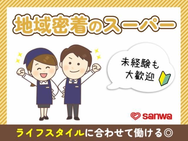 仕事情報 ● 仕事内容 夕方から閉店にかけての作業場の清掃作業、商品のしまい込み、売り場管理、閉店作業などのお仕事です。翌朝の営業に備えて、品出し、売り場手直し、清掃用具やカートの準備もお願いします。夕方から夜にかけての混雑時は、ときにはレジ応援も。はじめは先輩と一緒に作業を覚えるから未経験でもOKです! 接客力もアップ♪ 夕方から夜はスーパーが最もにぎわう時間帯。売り場での作業中に「商品はありますか」「売り場はどこですか」と聞かれることもしばしば。最初はすぐ答えられなくてもOK!先輩スタッフと一緒に作業するうちに、次第におもてなしする力も身につきます。ひとり立ちするまでは丁寧にレクチャーするので安心です。 希望シフトは毎月提出 スケジュールに合わせて、毎月希望のシフトを提出することができます。子どもの行事、学校のイベント、プライベートの用事など、さまざまなライフスタイルに合わせて調整しやすいのが三和の魅力。「仕事も頑張りたい」「プライベートも大事にしたい」。ワークライフバランスを大切にしたい方を歓迎する職場です。 日・祝日は時給アップ フルタイムもそうでない方も、パートさんは、日・祝日に時給50円アップの嬉しい加給あり!「育児がひと段落ついたから」「仕事に慣れてきたから」「連休前に集中して働きたい」など、それぞれのライフスタイルに合わせてしっかり稼げます。シフトは1ヵ月ごとに希望が出せるので調整しやすいのも嬉しいですね。 事業紹介 三和は、東京都の町田・多摩地区、神奈川の横浜・相模原を中心に、地域密着型のスーパーマーケットを経営しています。食品・雑貨の「スーパー三和」のほか、低価格コンセプトの「フードワン」など78店舗を展開(2024年8月時点)。直営の加工センターの食品を各店舗に卸す自社物流の構築にも力を入れています。