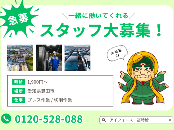 就業場所 愛知県豊田市高岡町 勤務先名 株式会社アイフォース