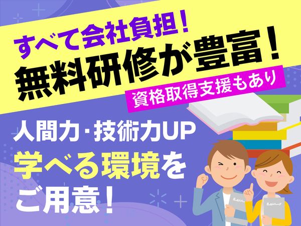 試用期間あり 期間: 3ヶ月 試用期間中の給与:本採用時と同じ 試用期間中の勤務時間:本採用時と同じ 入社後1ヶ月は経験や特性に応じて様々な研修を用意! ・入社 ・一般研修(会社知識、ビジネスマナー他)※約1週間 ・基礎研修(大学で学んだ知識を現場で活用するための研修)※約1か月 ・カスタマイズ研修(分野・業務別)※約1~1.5ヶ月 ◎未経験の方は新卒入社の方と同じ内容の研修を実施! 対面で行うことでわからないことはすぐに解決できる環境です! 他、任意で参加できる研修あり ・キャリアサポート講座(技術力) ・能力開発セミナー(技術力、人間力) ・管理職者研修
