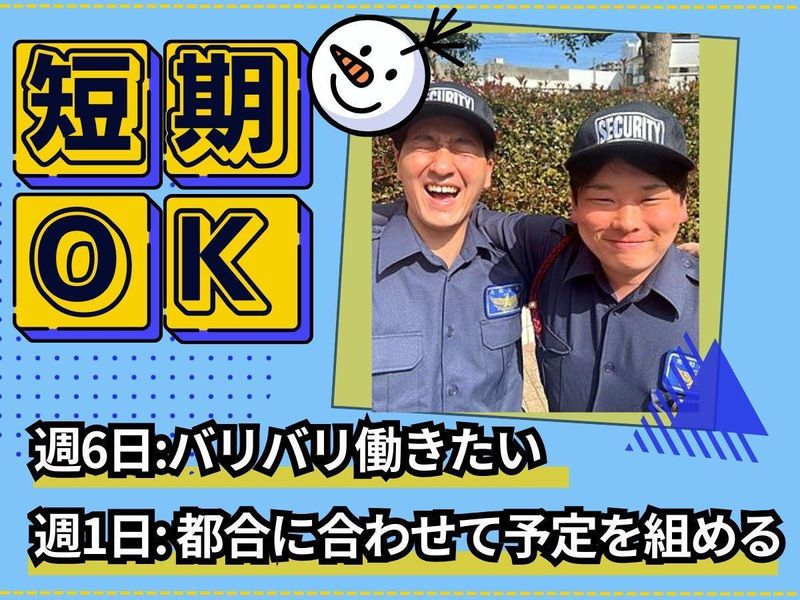勤務時間詳細 実働時間:1日あたり8時間 平均勤務日数:1ヶ月あたり4日 〜 24日 ⏰9:00~18:00(実働8時間)(休憩1時間) ⭐週1日~OK! -・-・-・-・-・-・-・-・-・-・-・-・-・-・-・-・-・-・- ⭐★シフトは柔軟に対応します★⭐  ̄ ̄ ̄ ̄ ̄ ̄ ̄ ̄ ̄ ̄ ̄ ̄ ̄ ̄ ̄ ̄ ̄ ✋本業が休みの週末だけ ✋週末にイベントがあるから稼ぎたい ✋マイペースに週1日~ など、柔軟なシフトでWワーク、 プライベートと無理なく両立可能! その時の都合で働いてください♪ ┏━━━━━━━━━━━━━━━━┓ 『3月末迄の短期』ですが 長期に変更も可能です!! 警備のお仕事が初めての方は お試し勤務も可能です❗(同条件) ┗━━━━━━━━━━━━━━━━┛