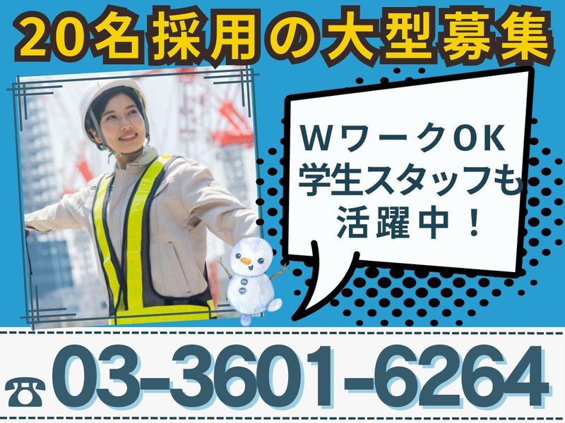 仕事内容 ╭────────────・⭐・・─╮ ✨全額日払いOK!✨ 長期で働ける方には... 入社祝い金4万円プレゼント♪ ╰─・・⭐・────────────╯ ⸜⸜3月末までの短期募集❗20名採用❗⸝⸝  ̄ ̄ ̄ ̄ ̄ ̄ ̄ ̄ ̄ ̄ ̄ ̄ ̄ ̄ ̄ ̄ ̄ ̄ ̄ ⭐《 新着求人★ココがPoint 》⭐ ✅日払い・週払いOK!即給料支払い ✅その日に全額日払いOK! ✅建設現場あり◎雨天でも中止しません! ✅力仕事なしで負担少なめ◎ ✅面接に来るだけで交通費支給 ✅研修時のお弁当代&ドリンク支給! ✅若手~60代シニアまで幅広く活躍中! ⋆⋅⋅⋅⊱∘─────────────∘⊰⋅⋅⋅⋆ ✨寒い日も安心♪防寒具支給! ✨週1日~OK!お試し勤務もOK! ✨年内に稼ぎたい方大歓迎! ✨履歴書不要でラクラク面接♪ ⋆⋅⋅⋅⊱∘─────────────∘⊰⋅⋅⋅⋆ 【最速で応募当日面接可能❗⭐】 その場で内定&研修スタートも可能◎ ⸜⸜ ✨ご応募お待ちしています✨ ⸝⸝ ⏬⏬気になった方はお電話下さい⏬⏬ "TEL:03-3601-6264" ⋆⋅⋅⋅⊱∘─────────────∘⊰⋅⋅⋅⋆ ≫⭐短期警備スタッフ大募集♪⭐≪  ̄ ̄ ̄ ̄ ̄ ̄ ̄ ̄ ̄ ̄ ̄ ̄ ̄ ̄ ̄ ̄ ̄ ⏩研修をしてからの安心スタート! 交通誘導のお仕事をお任せします! 大人数の現場で一緒に働きますので わからない事があってもスグに相談可能 ※建設現場もあるので 雨で中止!なんてとこはありません! ⛅警備のお仕事って 「なんだか危なそう…?」 「力仕事もありそう…?」 そんな印象をお持ちの方も いらっしゃるかもしれませんが、 女性・シニアの方も活躍している 始めやすいお仕事です((*'ω'*) _/_/_/_/_/_/_/_/_/_/_/_/_/_/_/_/_/_/ ≫⭐週1日~OK!働きやすい環境⭐≪  ̄ ̄ ̄ ̄ ̄ ̄ ̄ ̄ ̄ ̄ ̄ ̄ ̄ ̄ ̄ ̄ ̄ *自分のタイミングでシフトに入れるので Wワークやプライベートも大充実♬ ★予定に合わせて週1日だけ ★バリバリ稼ぎたいから週6日勤務 など、自分に合った働き方でOKです◎ ✅日勤のみ✅週1のみ…など 【株式会社光和警備】なら 自由に働き方が選べます♪ _/_/_/_/_/_/_/_/_/_/_/_/_/_/_/_/_/_/ ** ⛄研修について⛄ ** 初日からいきなり現場入り! そんなことは絶対にありません!!! まずは、オフィスで丁寧な研修を受け、 座学・巡回や交通誘導時の注意点などを 学んでいただいてから現場に出るので、 未経験の方も安心して始められます♪ ╭━━━━━━━━━━━━━╮ ⭐23区内で駅近の勤務地多数⭐ ╰━━v━━━━━━━━━━╯ ◇葛飾区 ◇足立区 ◇墨田区 ◇江東区 ◇江戸川区◇荒川区 など、他にも現場多数あり! ✅希望エリアがあれば お気軽にご相談ください! 直行直帰OK♪(交通費全額支給) ✨今回の募集は短期ですが、 「まだまだ長期で働きたい…!」と 継続される方には入社祝い金あり✨ *・⭐4月以降も現場多数あり⭐・* 4月以降に働きたい方も応募OK♪ _/_/_/_/_/_/_/_/_/_/_/_/_/_/_/_/_/_/