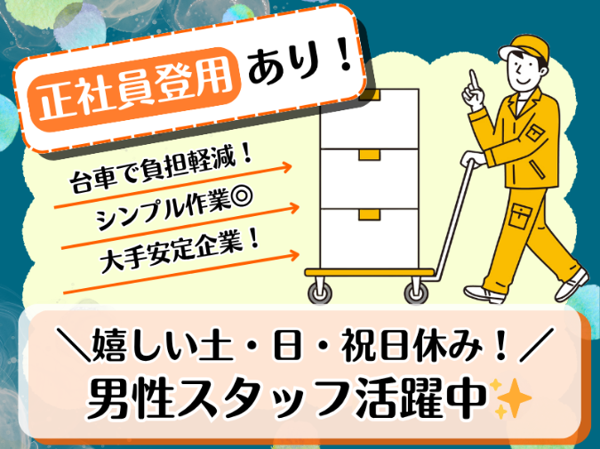 《年間休日113日!安定企業で安心勤務》しっかり休めてプライベートも充実!日勤の仕分け