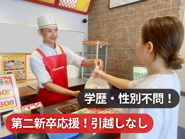 応募資格 ▼必須 ・要普通自動車免許(AT可、配送業務がある為) ・自家用車をお持ちの方 ・60歳未満の方(定年のため) ・外国籍の方は、日本語能力試験(JLPT)N2以上の日本語力をお持ちの方に限ります。 【学歴不問・経験不問・性別不問・転職回数不問】 ・要普通自動車免許(AT可、配送業務がある為) ・20代、30代、40代、50代の方も活躍中 ・現役の主婦(夫)さん、ママ・パパさんも活躍中 ・お弁当屋さんやレストラン、居酒屋などの飲食店での勤務経験活かせます! 《このような方も大歓迎です!》 ・フリーターから正社員にシフトチェンジを考えている方 ・新卒で入社したもののすぐに辞めちゃった、という第二新卒の方 ・飲食店で一度も働いたことがない未経験者だけど、やる気だけは誰にも負けない!という方 ・お弁当を作るのも食べるのも好きな方 ・ただただ「ほっともっと」が好きな方 ・仕事もプライベートもどっちも楽しみたい方 《最初から正社員雇用に少し不安がある方へ》 1〜2ヶ月ほど副業やアルバイトとして勤務頂くことも可能です。 実際の職場の雰囲気や仕事内容などを頂き、慣れてきたところで正社員にシフトできますのでお気軽にご相談ください!