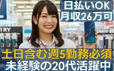 仕事内容 <お仕事内容> [花巻市] #SNS世代 が活躍中【携帯販売】 \家電量販店のSoftBankのコーナーで iPhoneのご案内をお任せします!/ お客様に、使用方法のご案内や、 料金プランのご説明をお願いします。 【こんな方にオススメのお仕事です】 #未経験 だけど転職したてで #日払い を使いたい #未経験OK でも #高時給 で働きたい #Z世代 #SNS世代 の仲間と働きたい ******************** \ポイント1:速攻で収入化!/ 9割以上の方が未経験でスタート。 日払い・週払いも使えて速攻で収入化! (※日払いに規定あり) ******************** \ポイント2:お金の心配は不要!/ 週5日フルタイムで働けるから、 収入もしっかり、安定します。 シフトが削られる事もありません! ******************** \ポイント3:SNS世代が未経験から活躍中!/ メンバーの平均年齢は26歳! リーダーも20~30代で歳が近いから 相談しやすい環境ですよ○ みんなで皆さんのお仕事スタートを サポートします! 【1日の流れをご紹介】 11:00 出社 11:10 ミーティング 11:30 営業開始 14:00 お昼休憩 15:00 午後のお仕事 18:00 小休憩 20:00 営業終了(お疲れ様です!) <勤務地詳細> 岩手県花巻市南新田283-2 【フェローズの携帯販売のポイント】 #フェローズへの正社員雇用の実績多数 #最速1年!正社員登用の実績多数 #年間50人以上!大企業への直接雇用 ☆----★----☆----★----☆ ◎昇給・キャリアアップ実例 ・入社1年目(25歳):スタッフ ⇒時給1,500円 ・入社2年目(26歳):リーダー ⇒時給1,700円 ・入社3年目(27歳):正社員 ⇒月給26万円+賞与 ◎派遣先の大企業の直接雇用になるメンバーも、 毎年50名以上!他社さんと比べても、 圧倒的な輩出数を誇っています。 ☆----★----☆----★----☆ 【スタッフAさん(入社2年目 26歳)の声】 前職は飲食店のホールスタッフ。 コロナで収入が不安定だったのと、 そのままバイトでいる事が不安で、 この仕事を見つけました。 派遣も携帯販売も初めてで不安でしたが 電話でカンタンに希望を伝えた後に顔合わせ という流れは、バイトの感覚と一緒でした。 今の仕事は、応募して1週間くらいでスタート。 飲食店時代はコロナで収入が不安定だったので そこが改善できたのは良かったです。 最初のうちはやっぱりお金がないので、 日払いも地味に助かっていましたね。 FLS