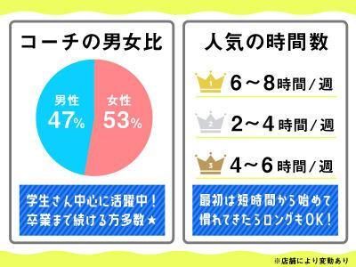 仕事内容 子どもたちと一緒にスポーツを楽しみ、教えていくオシゴトです★ 他にも、絵やカードを使ったりして課題解決能力などを鍛えていくプログラムも行います。 いろんなスポーツを教えていきますがスポーツが得意でない方・特定の種目をやったことがない方・インストラクターが初めての方でも問題ありません! まずは子どもたちがキホンの型を学び、色んなスポーツ楽しみ、好きになってもらうことが大切だからです。 実際に、 「子どもが好き」「教育・福祉関係に就職したい」「年代の近い仲間と楽しく働きたい」 などの理由から、アルバイトデビューした大学生クルーがたくさん活躍していますよ! (クルーが在学中の大学例:大阪体育大学、大阪国際大学、神戸親和大学、大阪リゾート&スポーツ専門学校 など) 。・○・。・○・。・○・。・○・。・○・。・○・。 <biima sportsって?> biimaとは、〈asobi(遊び)から始まる×新しいmanabi(学び)〉という意味の造語です。 「総合スポーツプログラム」と「非認知能力プログラム」の2つのプログラムから、 子どもたちの基礎運動能力、非認知能力、自己肯定力を高める21世紀型の総合キッズスポーツスクールです。 ……………………………………………… ★【 総合スポーツプログラム 】★ ……………………………………………… 下記7種類以上のスポーツを2ヶ月毎に変更しながら総合的に実施し、基礎運動能力を高めていきます! ○サッカー ○野球 ○バスケットボール ○テニス ○体操 ○スプリント ○スピード・アジリティ・クイックネス …など …………………………………………… ★【 非認知能力プログラム 】★ …………………………………………… 下記のプログラムを中心に、コミュニケーション能力・課題解決能力・社会適応能力などの能力を鍛えていきます! ○「ひらがなを使ってクリエイティブシンキング!?」(ひらがなを使った文字・文章組み合わせゲーム) ○「○○を探せ!謎解きゲーム!」(絵の伝言ゲーム) ○「ボールを落とすな!」(道具を使ったタワー組立ゲーム) …など 。・○・。・○・。・○・。・○・。・○・。・○・。 【お任せしたいオシゴトは…】 ……………………………………………… 3~12歳の子どもたちが対象のスポーツ教室で、インストラクターになっていただきます。 (先生1人に対して子どもは5人までというパーソナルスクールモデルです。) ☆指導未経験でもメインの先生がサポートしながら経験を積むことができます。 ☆人数や時間に追われることなく、子どもたちに対してもしっかりと向き合える環境です! ☆研修制度が充実しており、みなさんがしっかり指導できるようにサポートいたします!! <1日の流れ>……………………………… ▼レッスン開始30分前:集合! ▼今日のレッスンの事前打ち合わせ ▼レッスン開始10分前:会員さんとのコミュニケーション ▼レッスン(1時間×コマ数) ▼1日の振り返り ▼お疲れ様でした! 。・○・。・○・。・○・。・○・。・○・。・○・。 【週1日~&1日2時間~OK!!】 ……………………………………………… 短時間から始められるのでアルバイトが初めて…という方にもピッタリ! 「慣れてきたから、もっとシフトに入りたい!」というスタッフも沢山いますので、適宜ご相談ください♪ 「テスト期間だけ休みたい」「お盆・年末年始は実家に帰りたい」「卒業旅行に行きたい」などの長期お休み希望もOK! ご都合による0日週も、ご相談に応じます! ▼公式SNSもぜひチェックしてみてください! https://www.instagram.com/biima_sports/