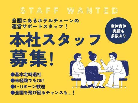 資格 <全国各地にビジネスホテルやマンションを運営するホテル運営サポートスタッフ募集!> 従業員数が少ないホテルでは、本社スタッフがホテル運営全般をサポートしています。 具体的な業務は、アルバイトスタッフの教育、電話やメールでのお問い合わせ対応、清掃会社や設備会社との取引対応など、多岐にわたります。ホテル運営に深く関わるため、現場でのサポートが必要な場合には直接足を運ぶこともあり、本社オフィスでの勤務と現場での業務をメリハリをつけて行うことができます。現場とオフィス両方での経験を積み、幅広いスキルを身につけたい方にピッタリのポジションです。ぜひご応募ください! 全国各地にビジネスホテルやマンションを展開する当社で、支店への出張を通じて現場の業務をフィードバックし、 新店舗の立ち上げでは新しい土地でホテルエリアワングループの魅力を広める重要な役割を担います。 <I・Uターン歓迎>未経験でもチャレンジしたい気持ちがあれば大歓迎です! 幅広い業務に携わりながら、あなたのスキルとキャリアを成長させるチャンス!I・Uターンを考えている方も歓迎!新しい土地での挑戦を応援します。ぜひご応募ください!