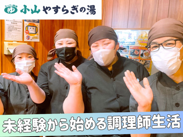 募集要項 職種 温泉施設内の調理スタッフ 雇用形態 アルバイト / パート 仕事内容 小山やすらぎの湯、施設内にある食事処の調理業務や調理補助をおまかせします! 未経験の方は簡単な調理からスタート! 先輩スタッフがイチから丁寧にお教えしますよ!! おまかせするメニューの例は、 ・麺料理 ・海鮮料理 ・炒め物 ・季節料理など 和食、洋食、中華など多彩な料理をおまかせします。 お客様に“”美味しい”を提供するやりがいたっぷりのお仕事なので、 調理をイチから勉強してみたい方はぜひチャレンジを! \ポイント/ ★既成品をほぼ使うことなくイチから作ることにこだわっている為、 仕込みや調味料の手作りなどからこだわっていただけます!! ★発券機制なので、接客はほぼ無く調理に集中できる環境です。 ★全員で集まって次のフェアの内容や新メニューを話し合う場もあるので、 社歴にかかわらずアイデアを出しやすい環境です。 新人さんの意見も「それいいね」と笑顔で聞いてくれるような人ばかりなので、 思いついたことを口に出しやすく、 新しい意見がどんどん出てきて新しいメニューが生まれています!
