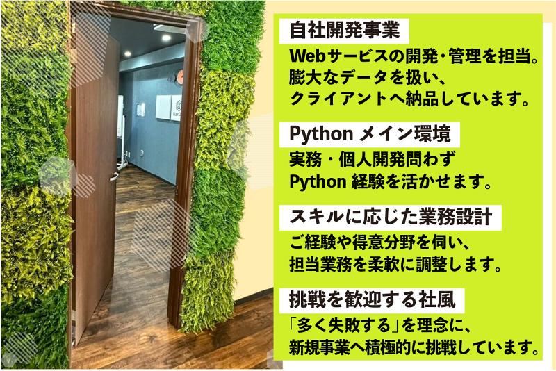 求める人材: システムエンジニアとして1年以上の経験がある プライベートを含めてpythonを使ったことがある