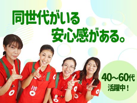 資格 特別なスキルや経験は、一切必要ありません。 まず、以下に当てはまる方は、全員大歓迎です! 〇 未経験からお仕事を始めたい方 〇 お仕事にブランクがある方 〇 年齢・学歴不問 \こんな方にもおすすめ!/ ・同世代の仲間と、和気あいあいと働きたい方 ・ご近所で、自分のペースで安心して長く働きたい方 ・誰かと話したり、「ありがとう」と言われたりするのが好きな方 ・長く働きたい主婦さん ダブルワーク不可 ※定年制有