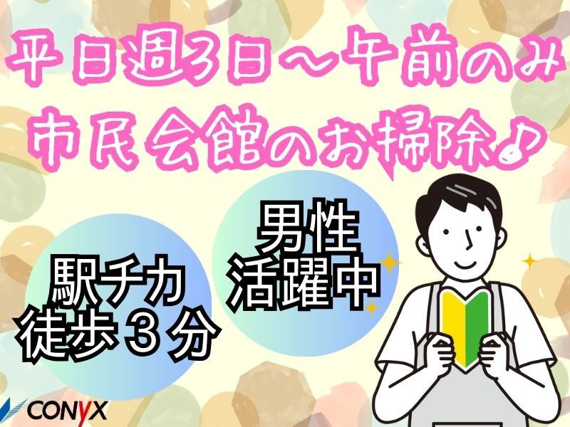 【仕事内容】 ⭕未経験OK ⭕平日の午前のみ!週3日~ ⭕駅チカ徒歩3分 ⭕扶養内OK 名古屋市中区金山にある市民会館の清掃スタッフを募集中! 【主なお仕事】 ✅館内の通路、階段、トイレなどの清掃 ✅石鹸・トイレットペーパーの補充 難しい作業、機械の操作はいっさいありません! 誰でもカンタンに始められるお仕事です。 ===================== 手厚いサポートや体制が自慢です ===================== 創業70年以上のコニックスだからこそ、働くスタッフへのフォロー体制が充実しています。 ⭐充実・安心の研修制度 丁寧な研修で覚えれるまでしっかりとサポートします。 ⭐働きやすい安心フォロー体制 お休み希望や困ったことが起きたときは、 担当スタッフがすぐにフォローする体制があります。 ============= まずはご相談からでも、お気軽にご応募ください♪ 【求人ID-CRN10A】
